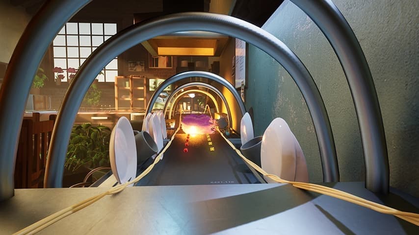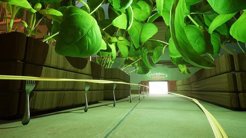 The core gameplay revolves around players controlling a pair of mischievous frogs who break into Stefano's Pizzeria. Mounted on their bikes, these frogs race through various levels to snatch ingredients, creating a fast-paced and engaging real-time race.
